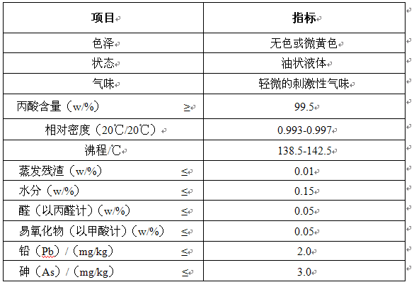 2、丙酸存在于發酵物中。在白酒中8-24mg/L,濃香型白酒中含量偏高。本制品在白酒與乙酸等酸類協調配合,使酒體后味有濃感、甜味、具有后勁。